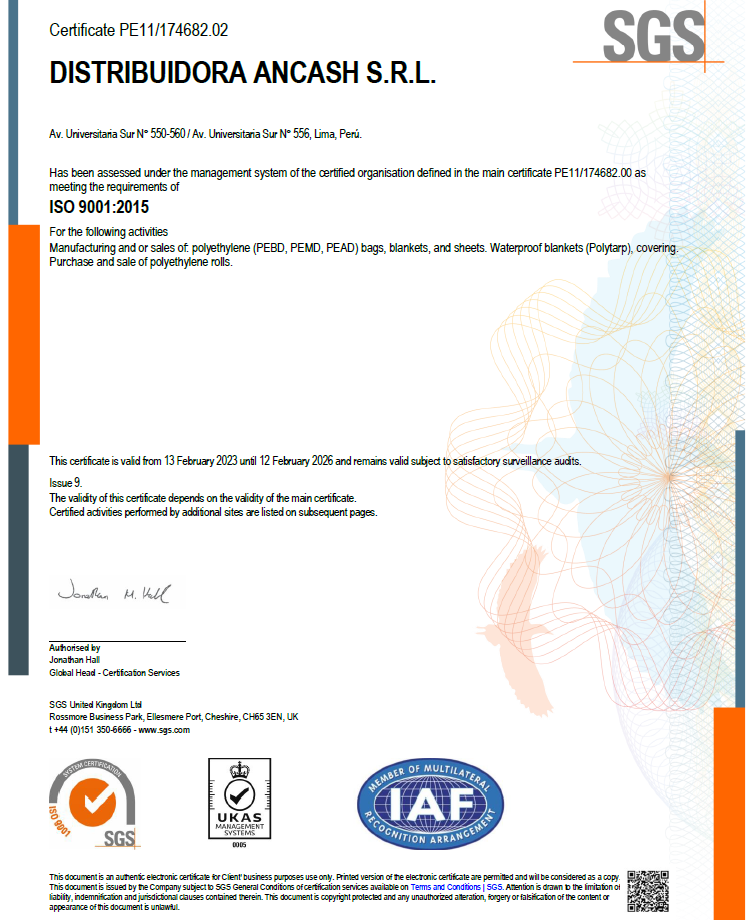 Estamos certificados en la norma ISO 9001:2015, para las actividades que figuran a continuacion: